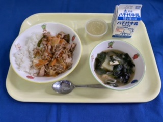 牛乳(千葉) ごはん(会津) 豚肉(千葉) にんにく(青森/田子) しょうが(高知/吾川) たまねぎ(北海道/北見) ねぎ(青森/十和田) にら(栃木/湯津上) キャベツ(長野) きゅうり(宮城/登米) にんじん(北海道) |