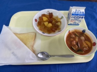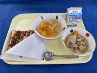 牛乳 ピザトースト かぶのポトフ フルーツポンチ(赤) |