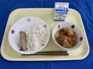 【県民の日献立】 牛乳 ごはん いわしの蒲焼き 小松菜のツナ和え 豚汁 牛乳プリン ※明日15日は千葉県民の日です。 県民の日にちなんで、千葉県産の食材をたくさん使った献立です。 |