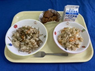 牛乳 ごぼうピラフ かぼちゃグラタン じゃこと大根のサラダ |