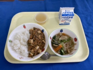 牛乳 ごはん マーボー豆腐 ワンタンスープ ピーチゼリー |