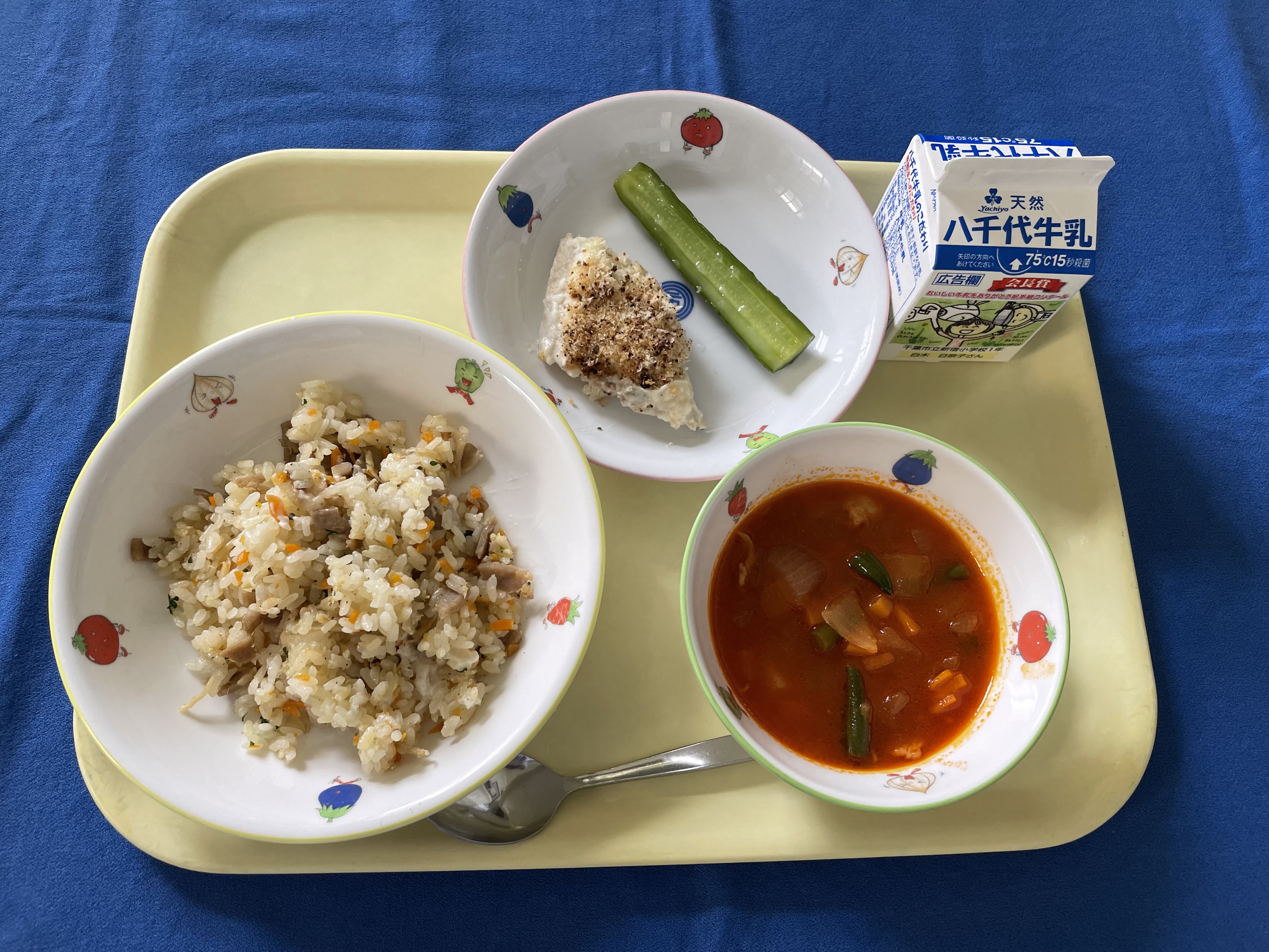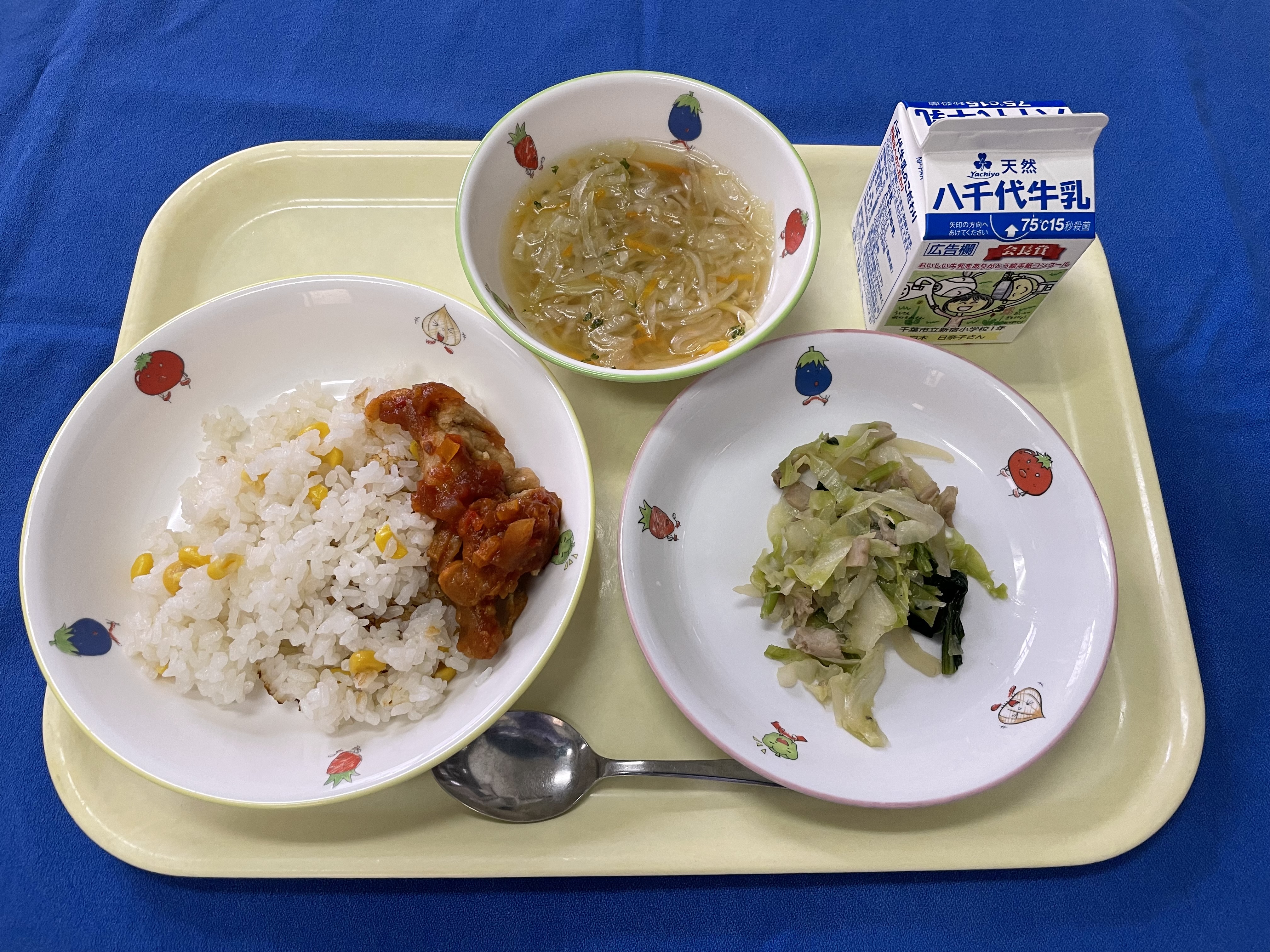 コーンライス 鶏肉のメキシカンソース 野菜ソテー コンソメジュリアン 牛乳 |