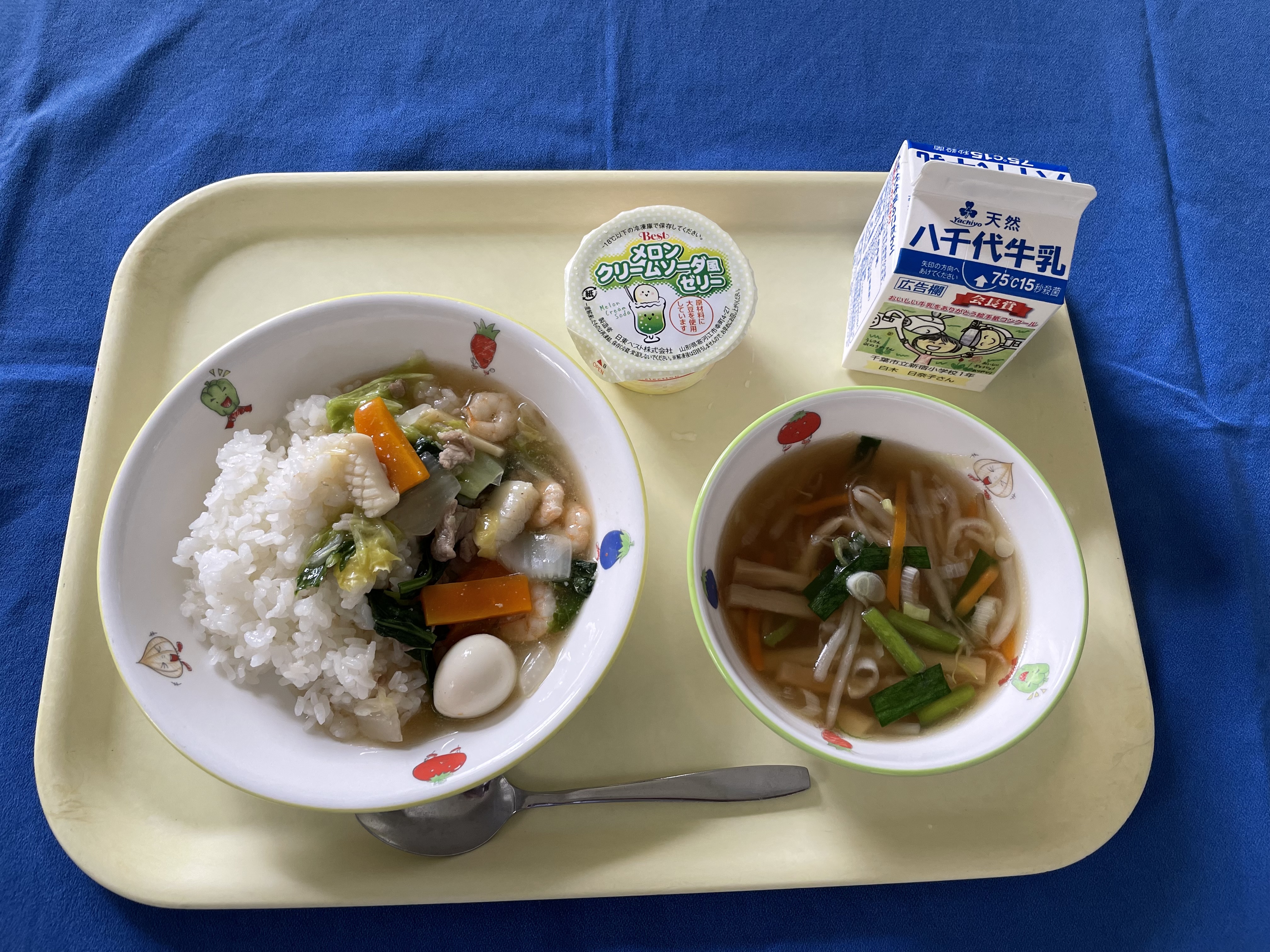 牛乳(千葉) 米(千葉) にんじん(千葉/船橋) 玉ねぎ(兵庫/淡路) 長ネギ(茨城/岩井) しょうが(高知) さといも(鹿児島/奄美) 小松菜(埼玉) パプリカ(宮城/宮城) |
