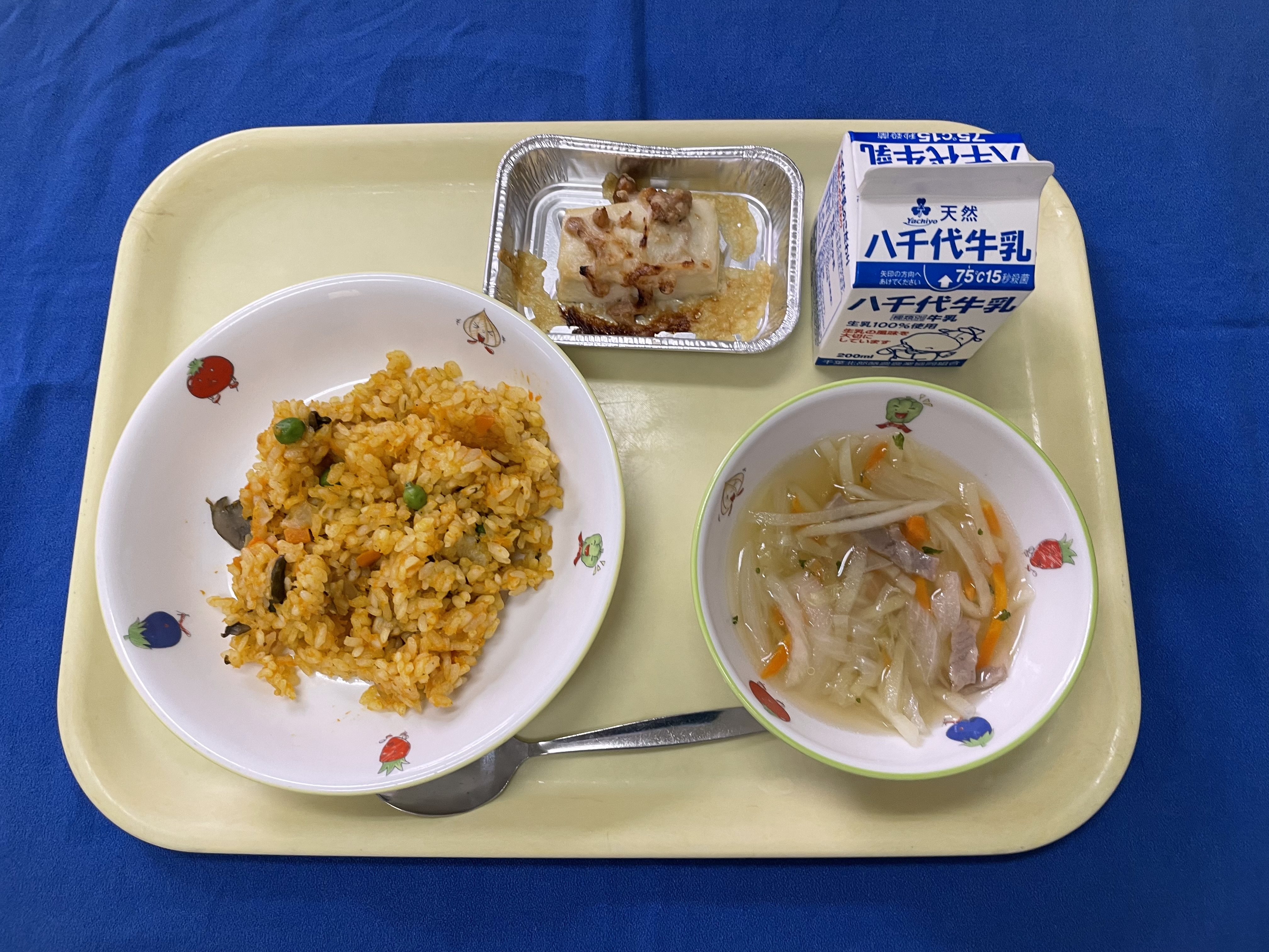 人参ピラフ 豆腐のツナグラタン ベーコンポテトスープ 牛乳 |