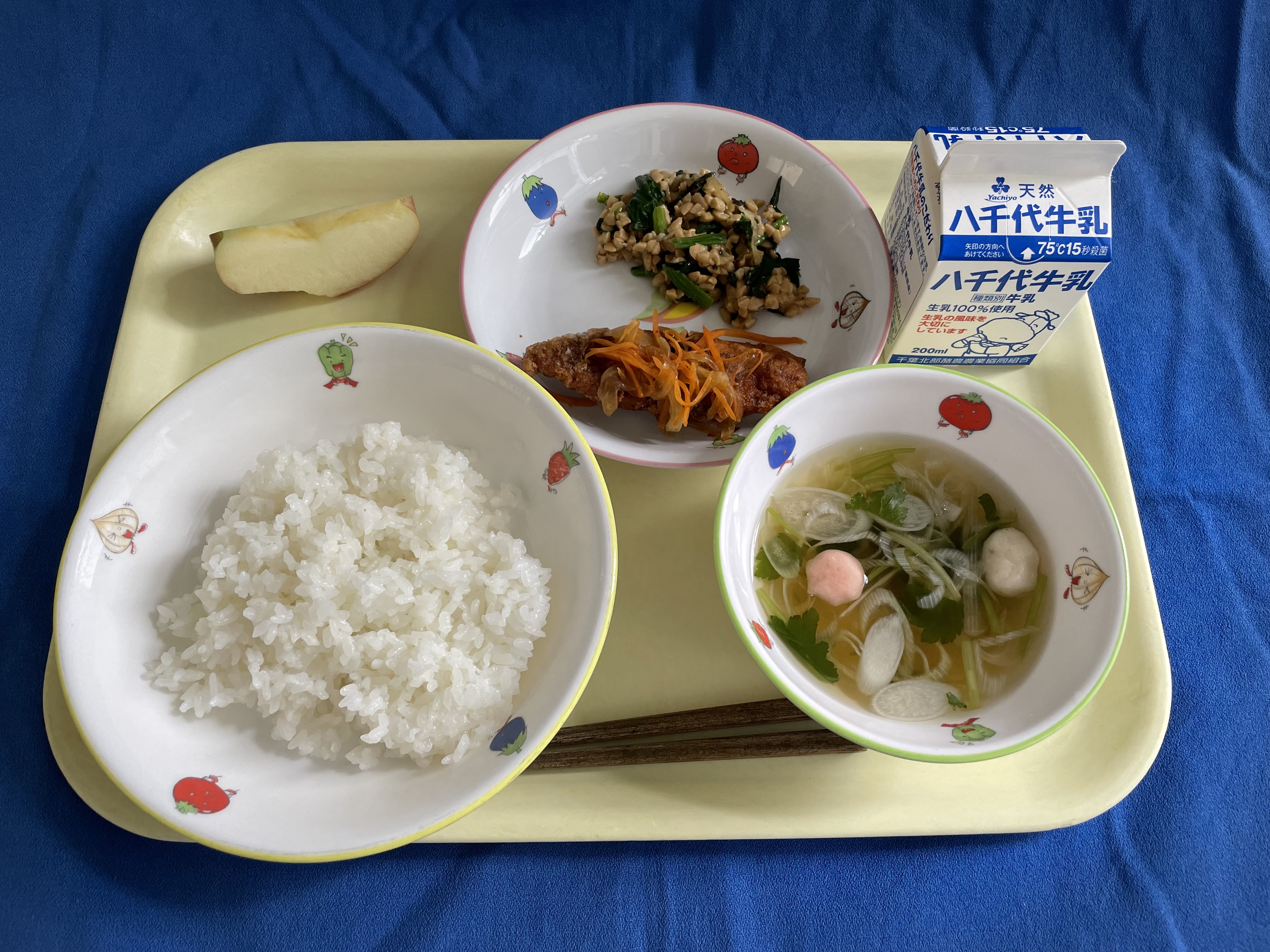 ご飯 鰆の和風マリネ 納豆和え すまし汁 りんご 牛乳 |