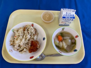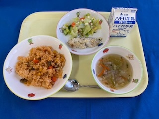 牛乳 チキンライス 魚のマヨネーズ焼き イタリアンサラダ ABCスープ |