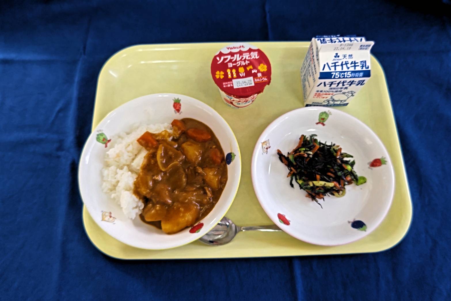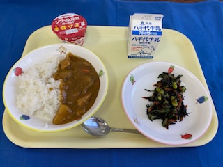 牛乳 むぎごはん チキンカレー ひじきのマリネ ヨーグルト |