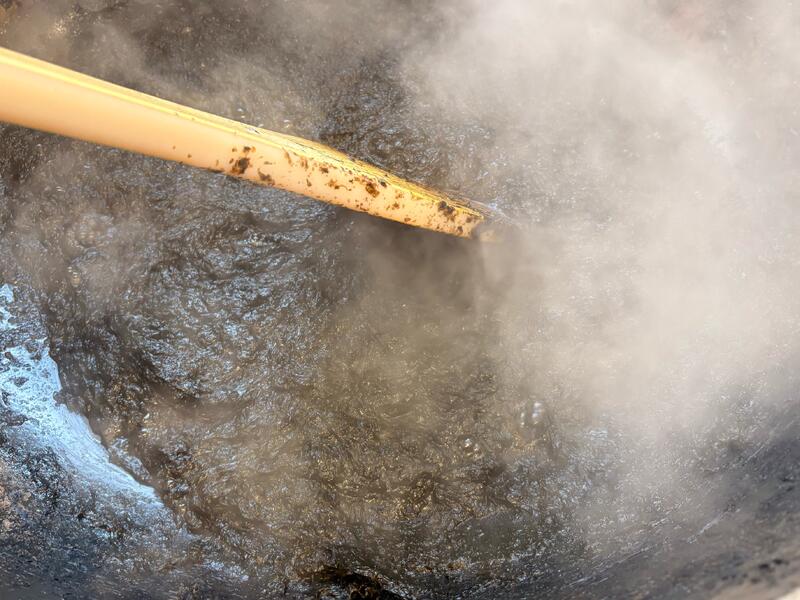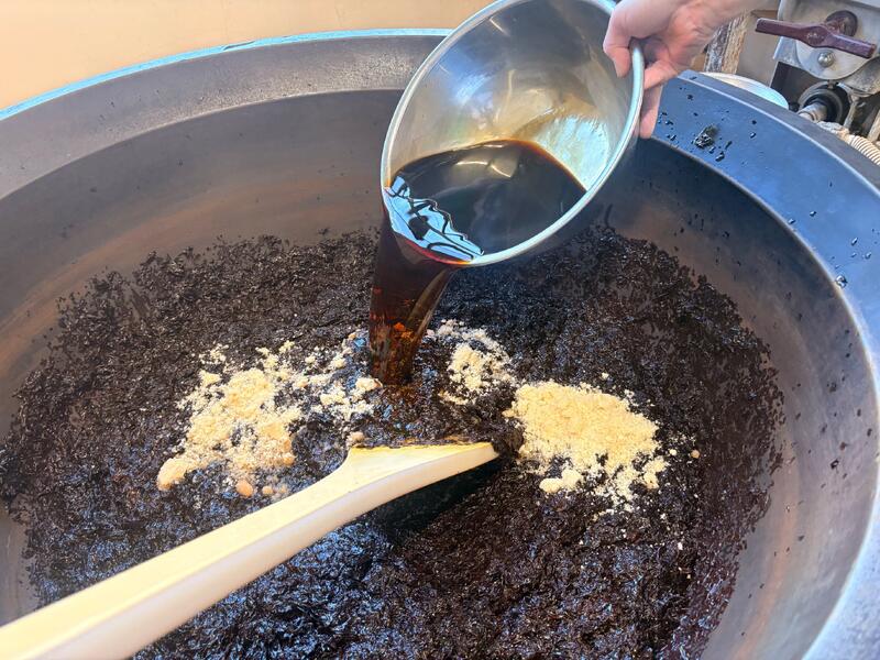 水分を飛ばしながら、三温糖、しょうゆを加え煮詰めていきます。