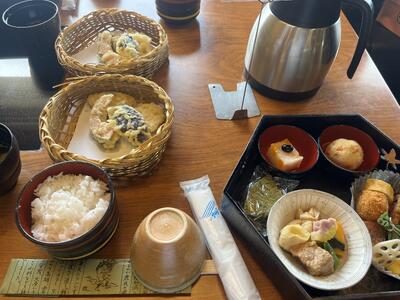 菜めし、ますの照り焼き、おみ漬け、芋煮汁、ずんだ餅、牛乳