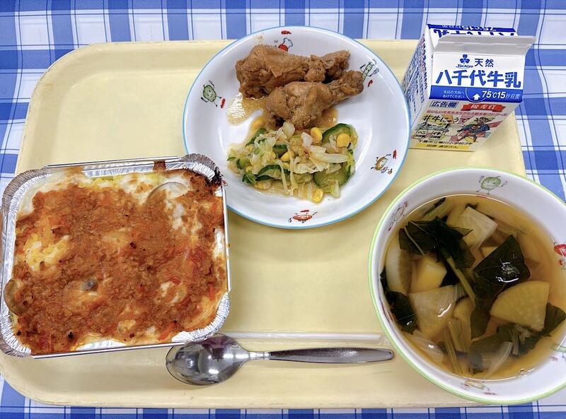 昨日はスポーツの日でした。部活などで筋トレをしている人も多いので、今日は身体を作る材料である「たんぱく質」を強化した給食です!