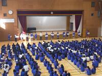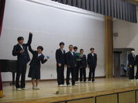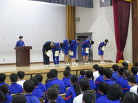 校長先生のお話に続き、生徒会長から各専門委員会委員長の任命。体育委員による体育祭の色別決めが行われました。