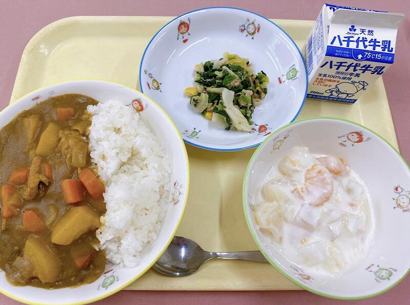 久しぶりの給食でしたが、人気定番メニューのカレーとコーンサラダ、ヨーグルト和えでよく食べてくれました