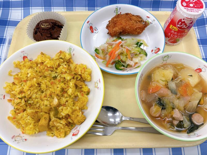 今日は2学期給食最終日ということで、少し早いクリスマス給食でした