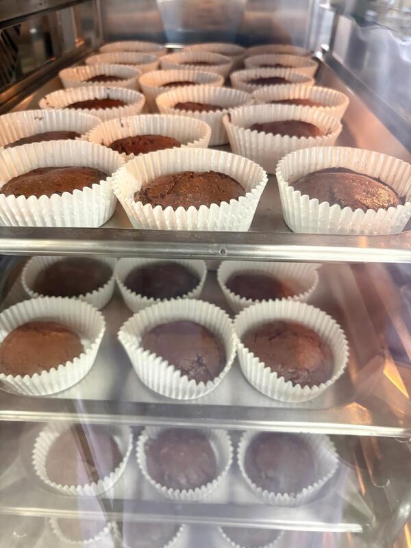 チョコチップ、溶かしたバターを少しずつ加え、粉っぽさがなくなりまとまったら生地の完成です