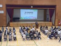 校長先生の話の後に、各委員会委員長の話、体育祭の学級旗コンテストの結果が発表されました。