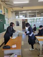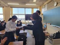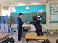 変更に伴い体育館てを予定していたPTA主催のフォトコンテスト表彰は各教室を回って行いました。