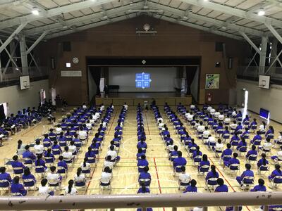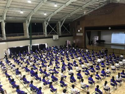 4月20日(水)5校時の時間帯に、新入生向け部活動集会が行われました。昨日までの仮入部期間が終了して、本日から正式に入部できることになることを踏まえて、共通する決まり事などを伝達しました。生徒たちは真剣なまなざしでお話を聞いていました。