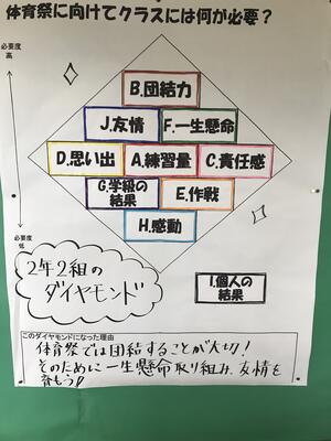 2年生の体育祭に向けての意気込みを各クラスごとにまとめた一部をご紹介します。