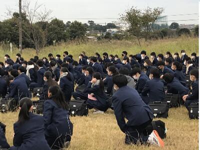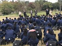 11月17日(木)5時間目に実施しました。全校生徒が校庭に集まり、数名の方々が自転車による交通事故を想定してくださりました。生徒たちは、実際の事故とほぼ近いので、事故の怖さや、改めて事故を起こさないための行動などを再確認していました。