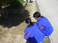 生徒たちは、校庭で植物を探していました。