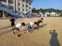 下中のグランドでは各部活が朝練に取り組んでいます。