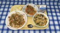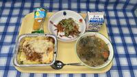 今日は「ミラノ風ドリア」がでました。「ミラノ風ドリア」と言えば、某イタリアンファミリーレストランでも人気メニューですが、本校の給食の一品もそれに負けないような素敵なお味でした。