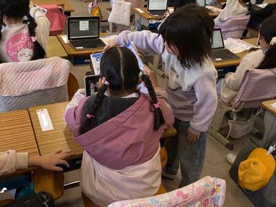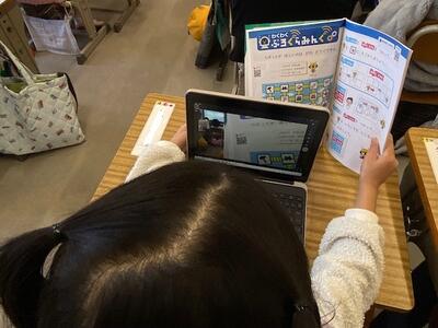 先日、6年生が1年生の教室に「パスワード」の入力のしかたなどを教えにきてくれたそうです。今日は1年生どうしでも「これ、どうするの?」「これは、こうやるんだよ」と教え合っていて、本当に頼もしいです。