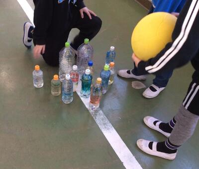 交流ももう3回目。どんなお友達がいるか、3年生はよくわかっています。ボーリングは坂道を使ってボールを転がそう、的あては、的を身長などに合わせて上げ下げしよう、どんなお友達も参加できるようにルールを工夫しよう・・・