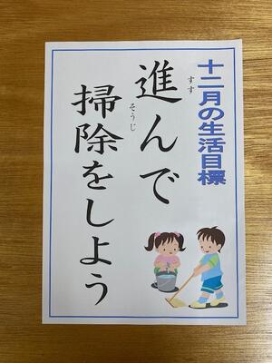 きのうは12月の朝会、生活目標の「進んでそうじをしよう」について、担当の先生からお話があったあと、各学級で、そうじの仕方についての動画を見ました。