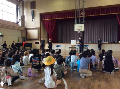 今日もALTの森田イアラさんが来校。2年生が英語の自己紹介に挑戦です。ドキドキしながらも手を挙げて「My name is ~」と チャレンジする友だちに「すごい、すごい」と大きな拍手。みんなの笑顔が素敵でした。
