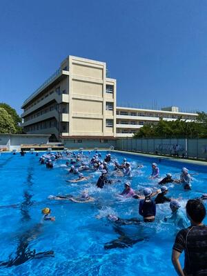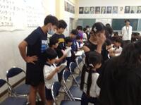 今年は体育館のエアコン工事のため、どの学年も教室で半紙を使った書初め練習に取り組んでいます。今日は市川南高等学校、書道部の顧問の先生と生徒さん11名が、3年生の書初め練習の支援に来てくださいました。