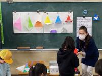 今日はインフルエンザの流行、学級閉鎖のため延期になっていた「むかしあそび」が行われました。教えてくださる地域の方々は、今日の日のために再度都合をつけて来てくださったそうです。