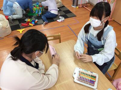 今日と明日の二日間は第六中学校の生徒さんが職場体験(教員志望だそうです!)に来ているので、子どもたちはますますはりきっていました。「あきまつり」楽しみです。
