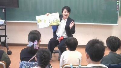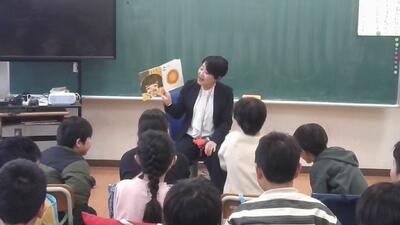読書月間もそろそろ終盤。今日の朝の読書タイムは、子どもたちがそわそわしています。今日は担任の先生以外の先生が教室で読み聞かせをしてくれるのです。絵本や大型本、テレビを使った先生たちの読み聞かせ、子どもたちは目を輝かせて聞いていました。