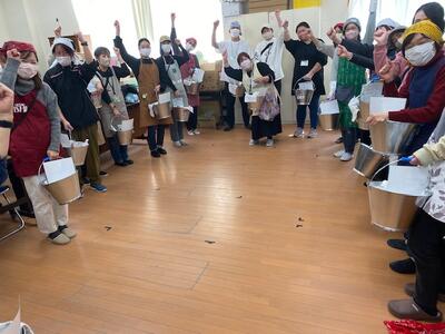 宝物を持っている仲間は、音楽に合わせて、手拍子や足踏みなどのボディーパーカッションで表現しました。