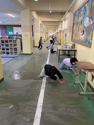 今日は避難訓練でした。冬になって火を使うことが多くなります。今日は、地震のあと、火事が発生した、という想定でした。地震発生時に机の下で身体を守り、揺れが収まってから廊下に並び、校庭に集合する、という内容でしたが、校内でインフルエンザや発熱のお子さんが多く、今回は外に出ての訓練は行いませんでした。