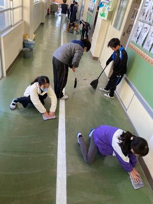 今日は、PTA本部の方々や保護者の方々の応援をいただいて大掃除を行いました。まず、子どもたちが授業をしている間、保護者のみなさんがすすはらい。その後、教室や廊下を子どもたちと一緒に掃除をしていただきました。子どもたちもがんばって大掃除。