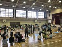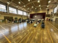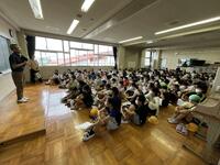 1時間目は、体育館でレクリエーションを行い、片岡安祐美さんと子どもたちの仲を深めました。