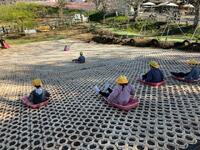 小雨が降ってきたので、屋根のある所に戻ってきました。みんな充分に遊べたようです。