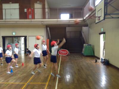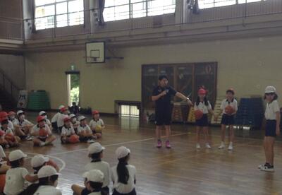 今日はプロバスケットボールチーム、千葉ジェッツのコーチが、5年生の子どもたちにバスケットボールの楽しさを教えに来てくださいました。