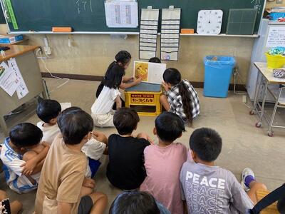 腹話術を使っての原爆体験を、子どもたちはとても真剣に聞いていました。世界中の人達と友達になってほしいという、小谷さんからのメッセージを胸に、これからも平和について考えていきます。