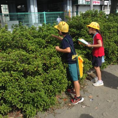 2日に3,4組、3日に1,2組が、「公園探検」の学習で小栗原東公園と小栗原西公園に行きました。公園には何があるのか、それは何のためにあるのかを考えながら、ワークシートにメモする子どもたち。