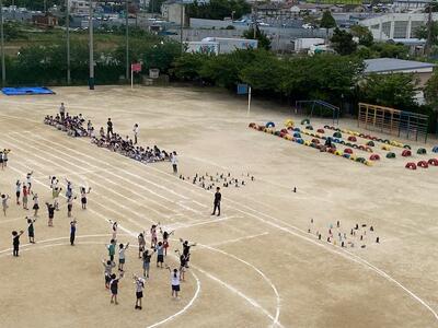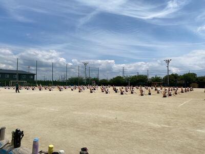 練習後、きらきらした瞳で教室に戻る子どもたちの姿を見て「がんばったね」といろいろな先生が声をかけています。これから急に暑くなりそうです。学校でも水分補給について声かけをしていますが、水筒の中身や、量についてもう一度ご確認をよろしくお願いいたします。