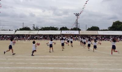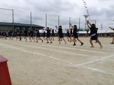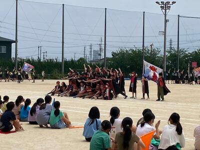 世界でたった一つ、自分だけの「一文字」を背中に描いた衣装に身を包み、一人ひとり力強く舞う5年生。集団での演技もとても上手になりました。
