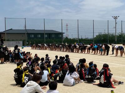 6年生、小学校生活最後の運動会に向けた練習風景です。お兄さんお姉さんの静と動を意識しながら取り組む姿、緊張感みなぎる姿に、他の学年の子どもたちも息をのんで見つめていました。