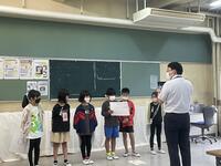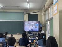 まずはじめに、特別支援学校の先生が来てくださり、学校での学習や生活の様子を、映像や先生方の演技、クイズなどを通して教えていただきました。小学部から中学部、高等部のみんなが食堂に一堂に集まり給食を食べている写真を見て、人数の多さに驚きの声が上がりました。
