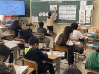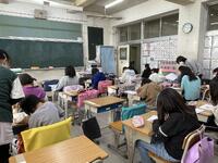 6年生は、外国語の時間に、大学生による英語の絵本の読み聞かせを聴きました。難しい単語も出てきましたが、読み聞かせをしてくださった大学生の方のジェスチャーや説明で子ども達も内容を理解できたようです。たくさんの動物などの単語を覚えて書くことができました。