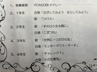 2年ぶりの開催で、みんなで目標に向かって、声を合わせたり楽器の音を合わせたりする活動のよさが感じられる会となりました。発表会の後の振り返りには、それぞれの学年の発表の素晴らしさがたくさん書かれていました。