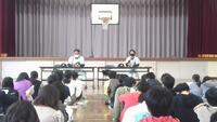 今回は、ペア学年は体育館でお互いの発表を聴き合い、それ以外の学年の発表はオンラインで視聴しました。