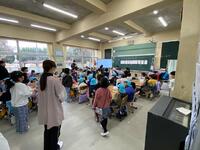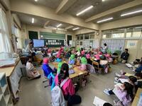 いよいよ交流会が始まりました。あんなに楽しみにしていたのに、1年生の子どもたちはとても緊張していましたが、プレゼントを渡したり、一緒に遊んだり。学校案内をするころには、笑顔がいっぱいでした。